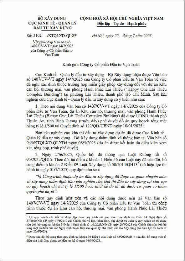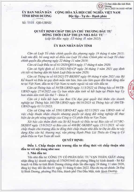 Pháp lý là một trong những điểm mạnh nổi bật của Happy One Mori, được Vạn Xuân Group cam kết minh bạch và đầy đủ ngay từ giai đoạn chuẩn bị, giúp khách hàng an tâm đầu tư và an cư. Dưới đây là các thông tin pháp lý chính dựa trên dữ liệu cập nhật đến tháng 10/2025