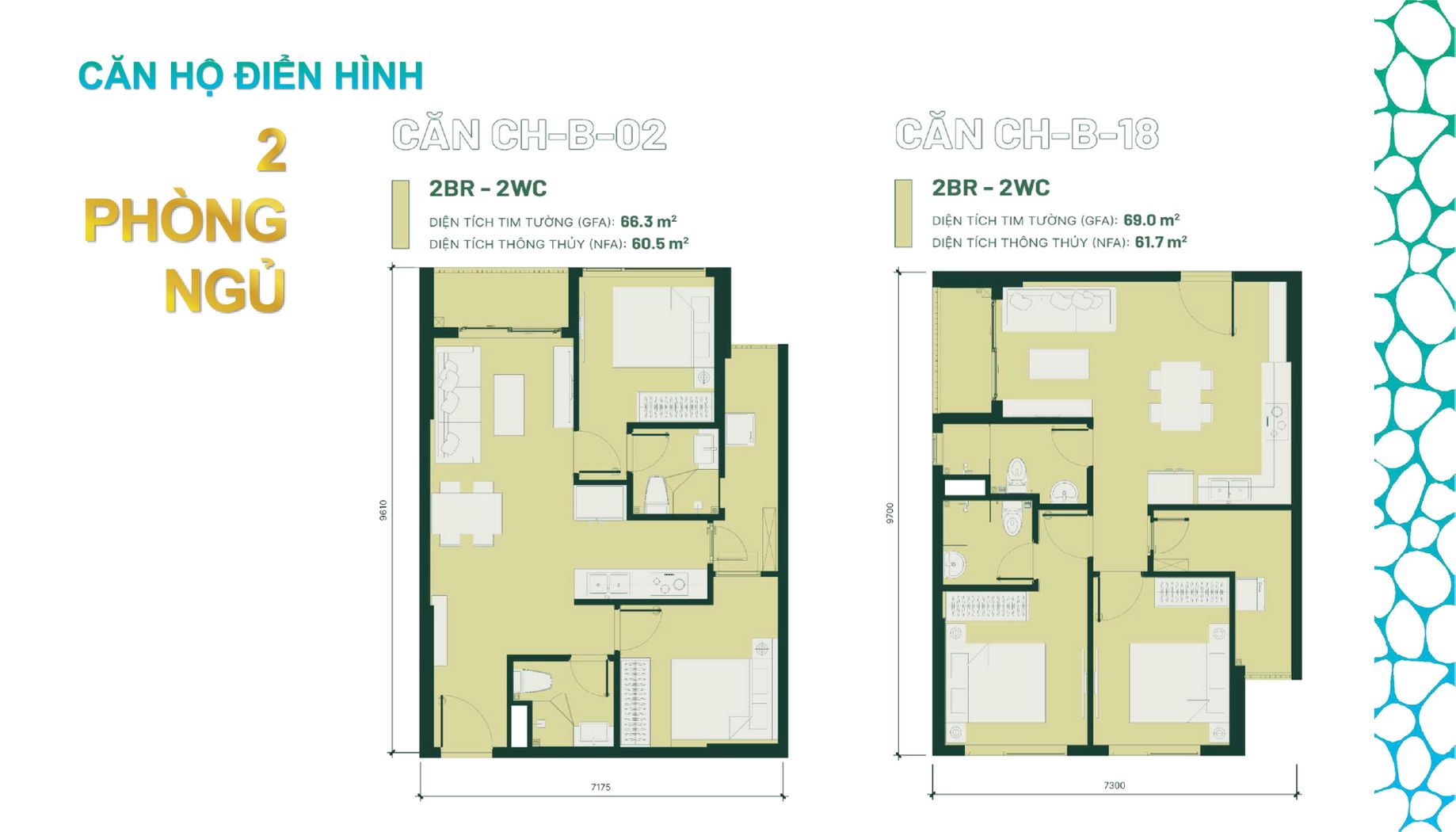 • Căn hộ 2PN-2WC: ~69-73 m²