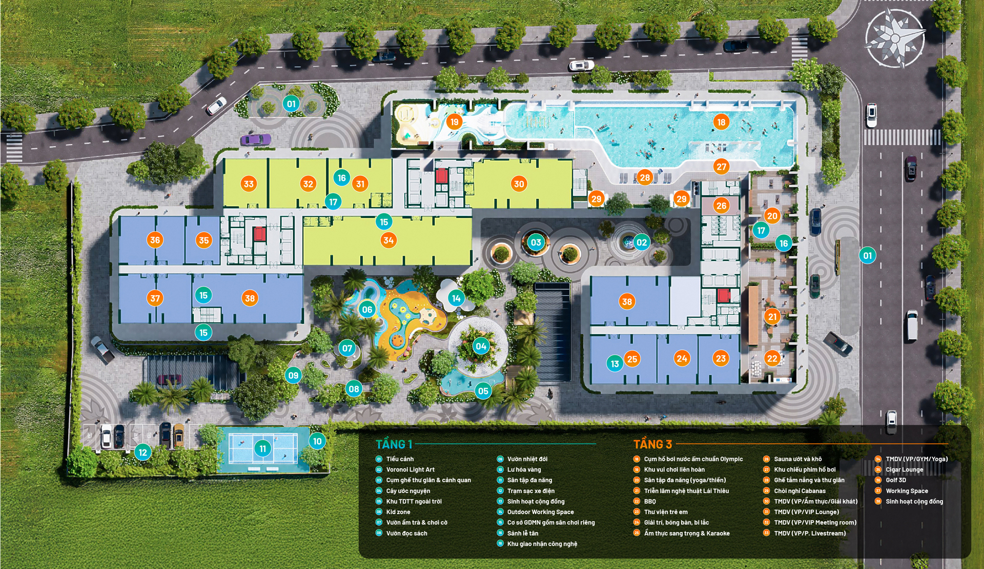 🌱 Mỗi hàng cây, sắc hoa – từ lộc vừng, chà là, thiên điểu, lan ý, hồng môn, dương xỉ… – đều được chọn lựa kỹ lưỡng, để thiên nhiên không chỉ là cảnh quan, mà là dòng chảy thịnh vượng, chở che và nuôi dưỡng một cộng đồng sống đầy tinh tế và an yên.